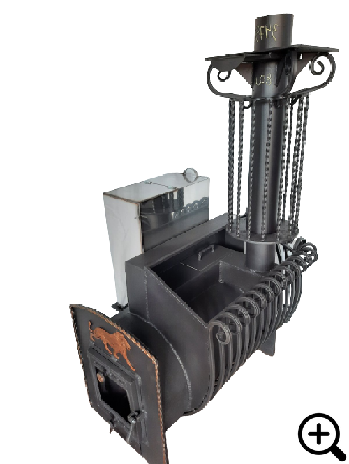 «Флагман» — это металлическая печь для бани, которая станет надёжным источником тепла и уюта в вашей бане. Она обеспечит одновременный прогрев трёх смежных помещений: комнаты отдыха, моёчной и парной. В моёчной за отопление отвечает часть печи с баком для горячей воды, который вмещает 80 литров жидкости. Парная обогревается благодаря мощной кованой каменке и системе дымохода, создавая идеальные условия для лёгкого пара.