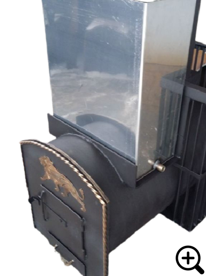 Дровяная банная печь с выносной топкой АНГАРА-4, открытая каменка. (+Бак 60 литров)